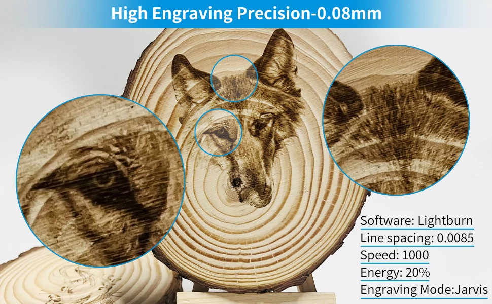 *The above test data is 100-200mm/min, 100% power, Pine or basswood planks. Need to match air pump and honeycomb panel. The specific results will vary depending on the density and material of the plank.