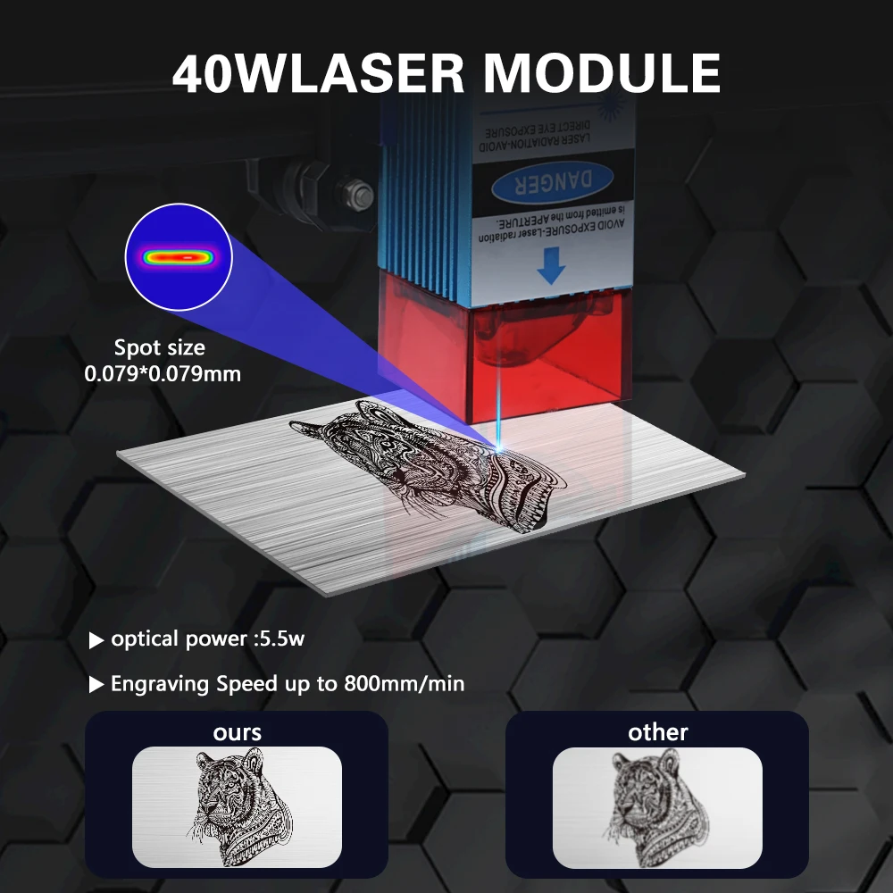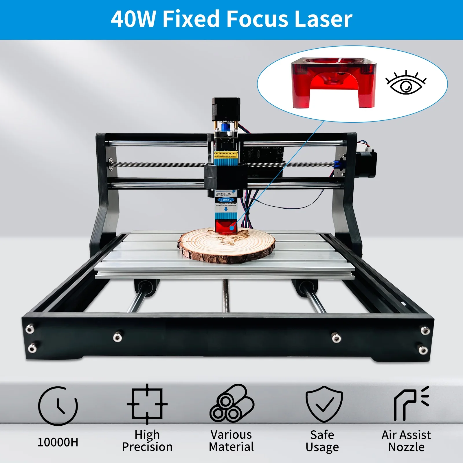 ▶Designed with a magnetic protective case, it perfectly protects your eyes. Enjoy the engraving process without additional goggles, more comfortable and convenient. Fixed focus design makes it easier to use.