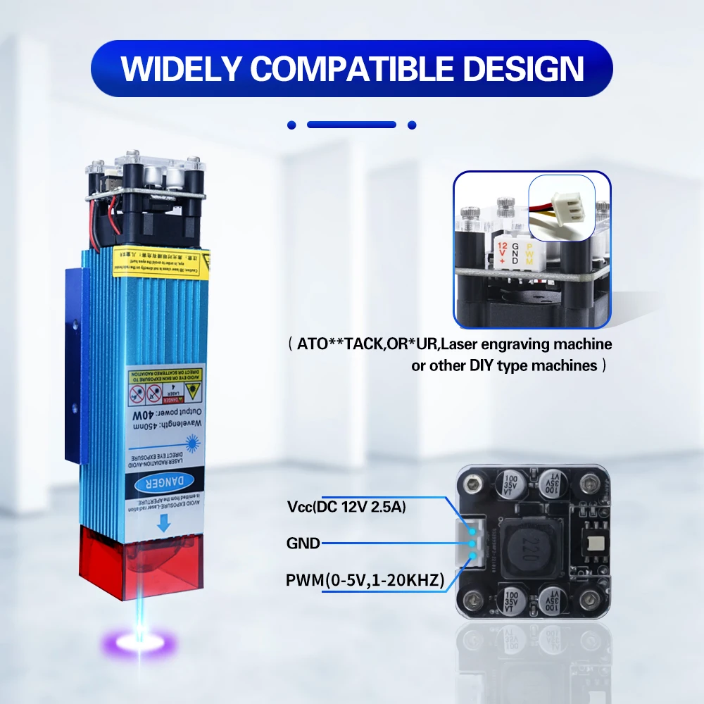40W Fixed Focus Laser Fixed Focus Laser Head 450nm Metal Wood Acrylic Laser Engraving Specs: