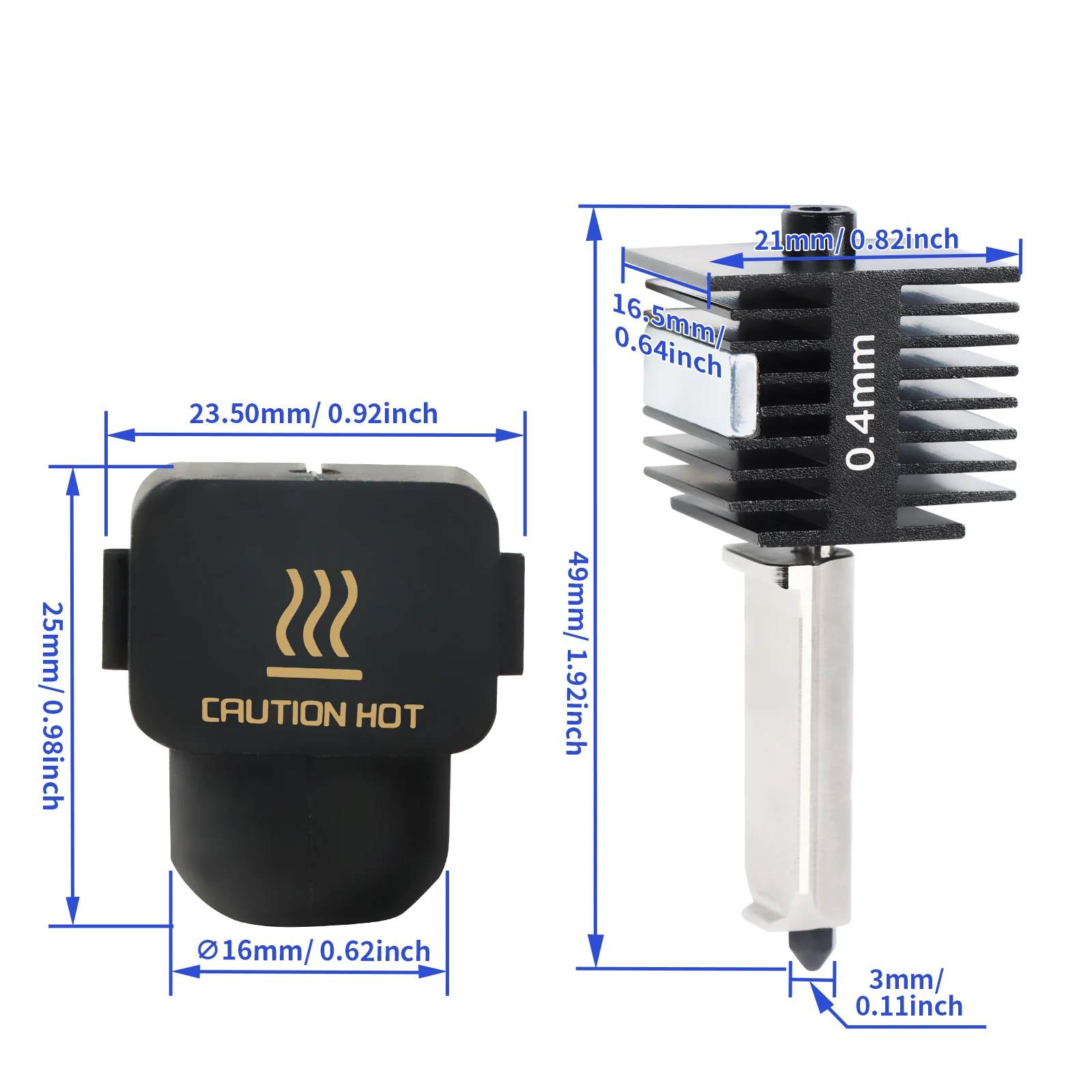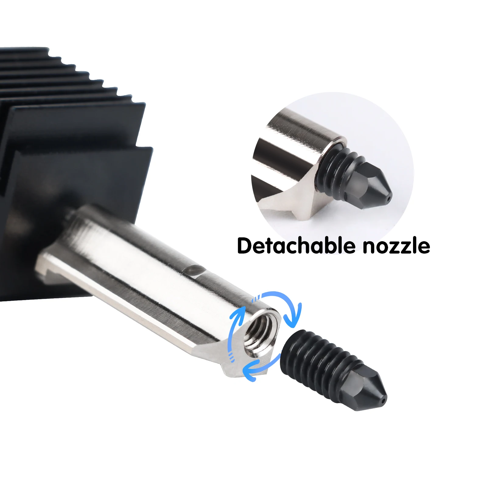 - High Temperature Printing: 0.2mm Hardened Steel Nozzle Is Made Of High Quality Hardened Steel Material With Higher Thermal Conductivity, Higher Strength, Stronger Oxidation Resistance And Longer Service Life, It Can Support High Temperature Filament ≤ 320℃, And The Removable Nozzle Is Easy To Replace And Saves Time.