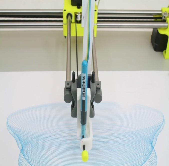 This version builds on what I learned. Most obviously, it uses a traditional ‘cartesian’ design, where movement in the y-axis is provided by a motorized arm, while the drawing surface stays still. This has the benefit of much greater accuracy. It also means that you can, in theory, draw on any flat surface.
