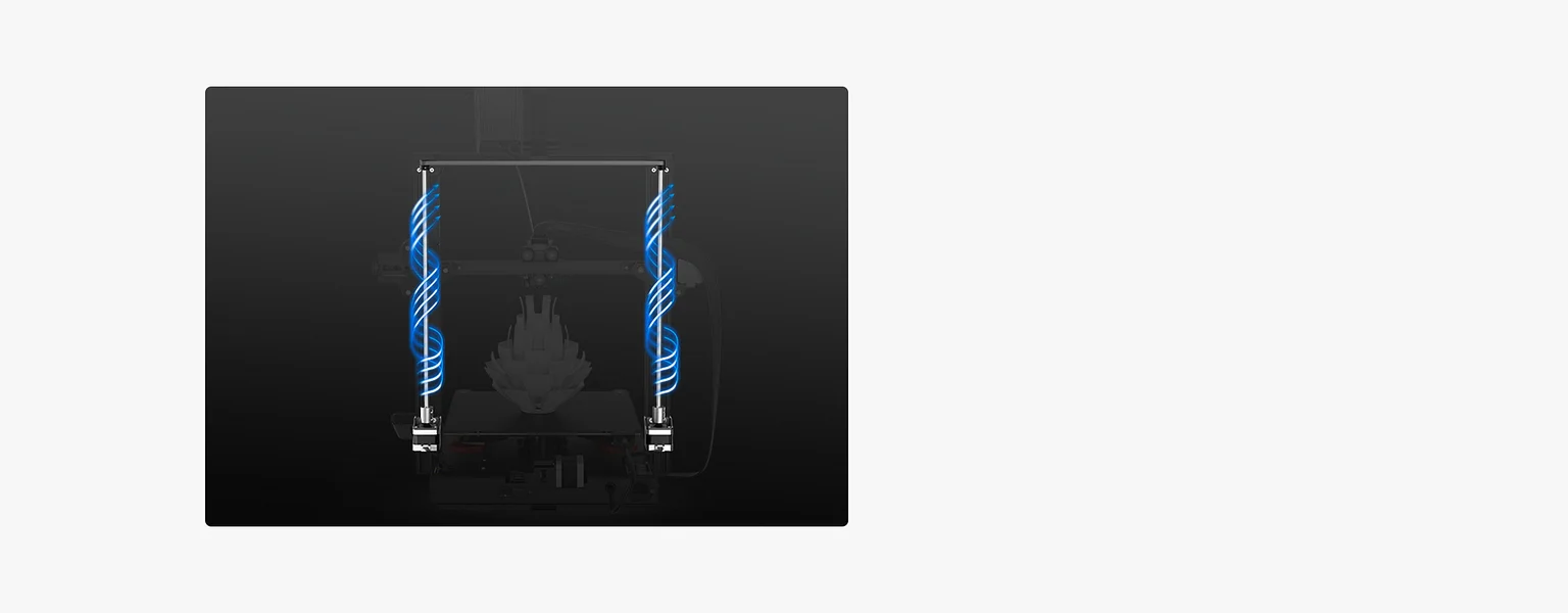 Dual Z-axes lead screws and dual motors for stable movement and quality printing.