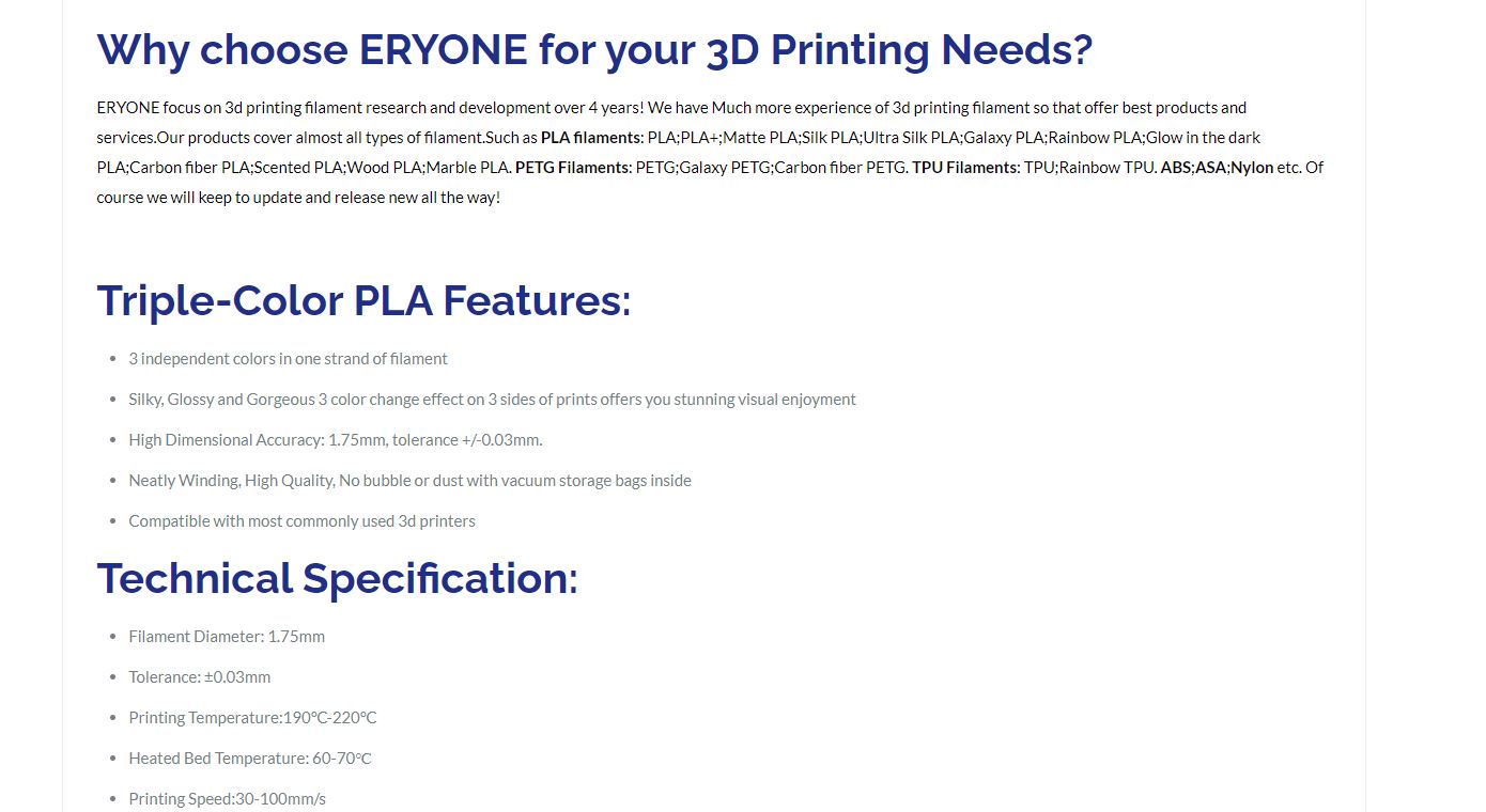 - High Dimensional Accuracy: 1.75mm, tolerance +/-0.03mm.