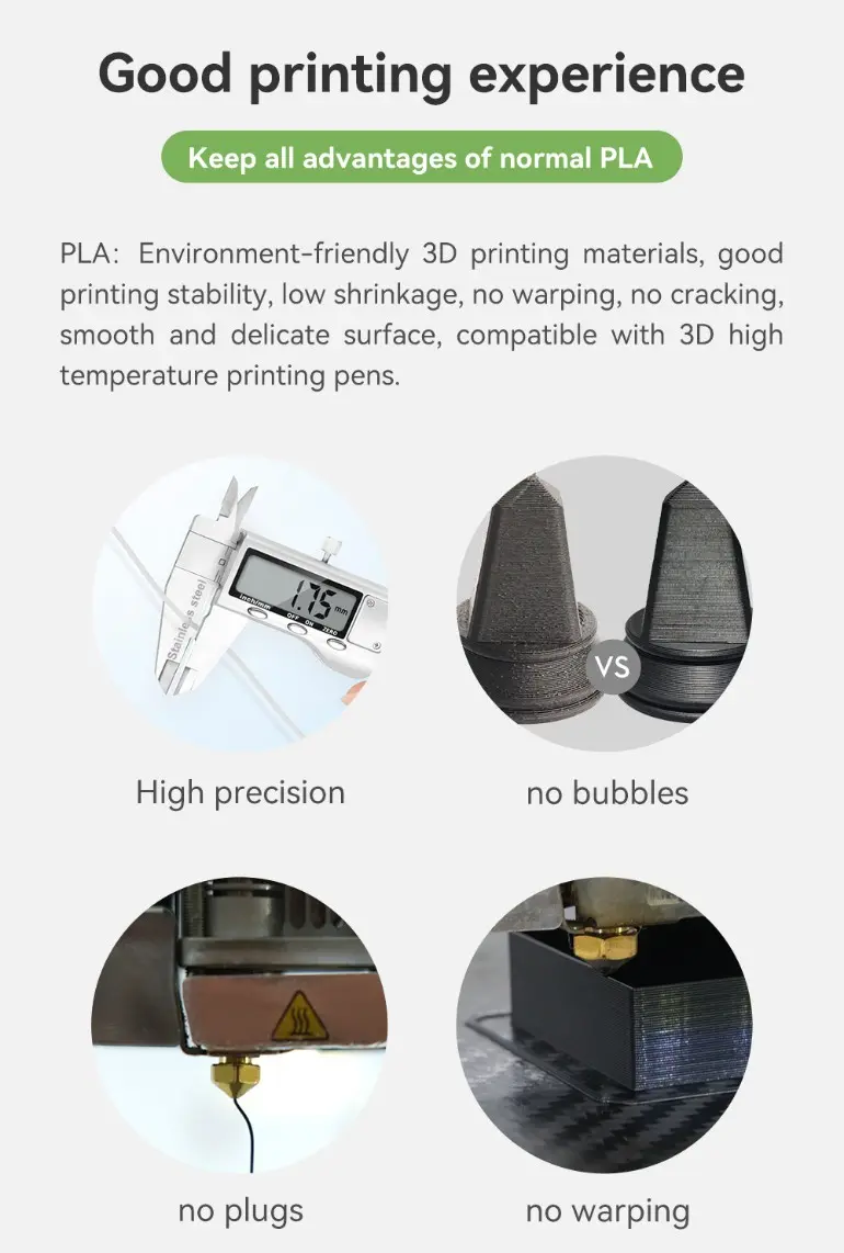 ESUN PLA+ 3D Printer is an environment-friendly material, which is easy to print and has smooth surface. PLA+ filament has good strength, rigidity, toughness balance, strong impact resistance; So PLA plus is considered suitable for functional parts printing. eSUN PLA+ is approved by FDA, safer to use; PLA pro can be used for modeling, rapid prototyping.