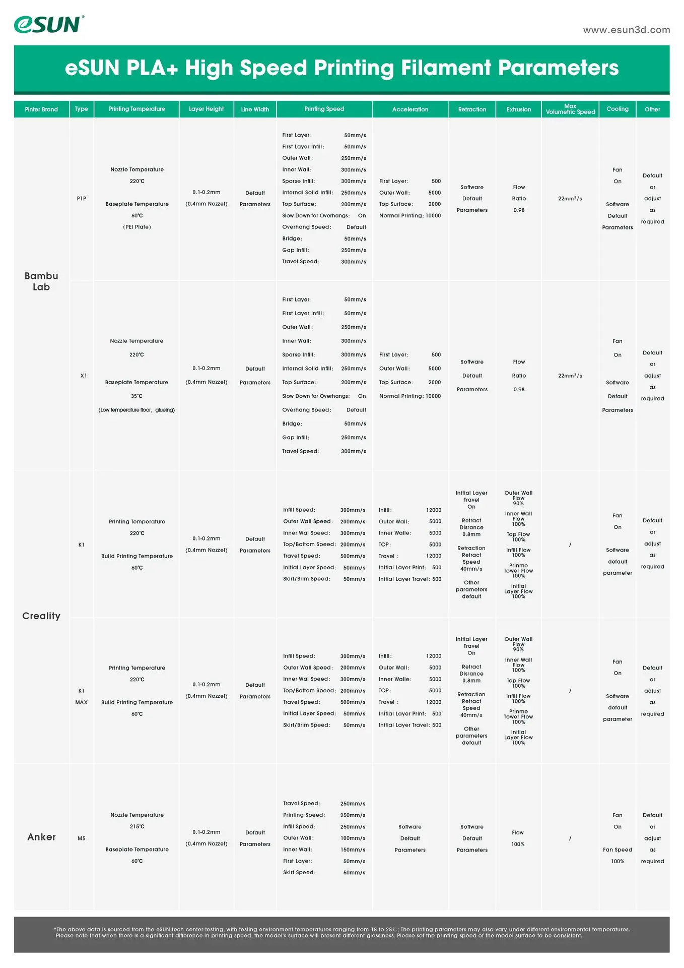 Features of ESUN PLA+ 3D Printer