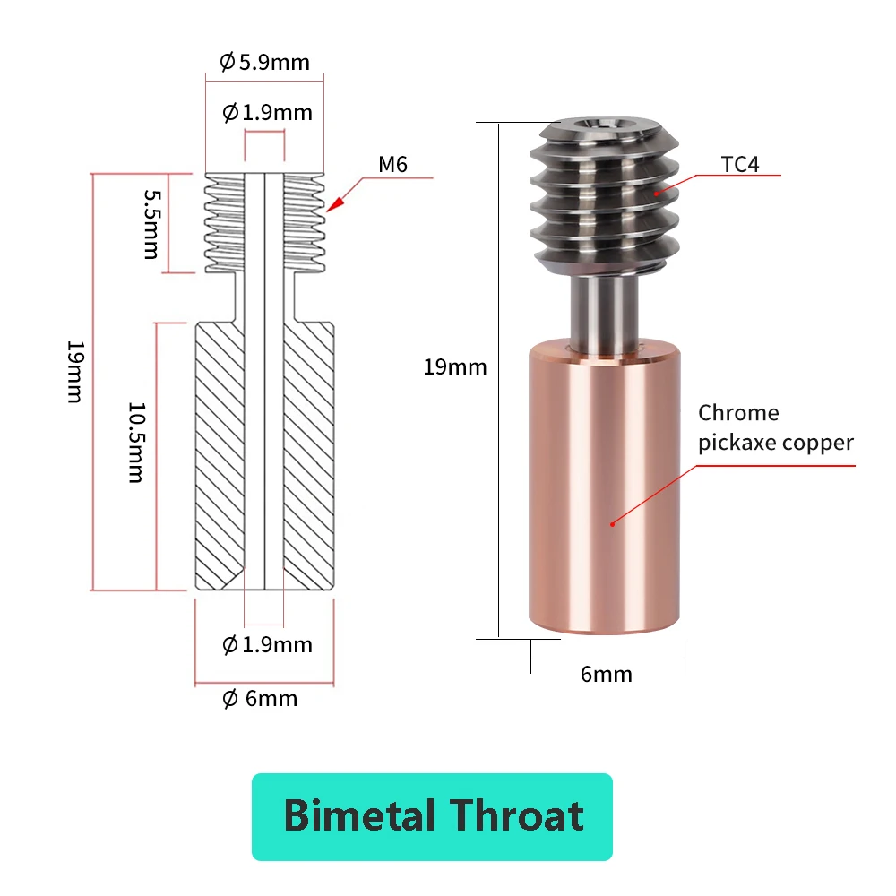 Material of Heatbreak:Stainless steel/Titanium alloy/Bi-metal(Titanium alloy&Copper)