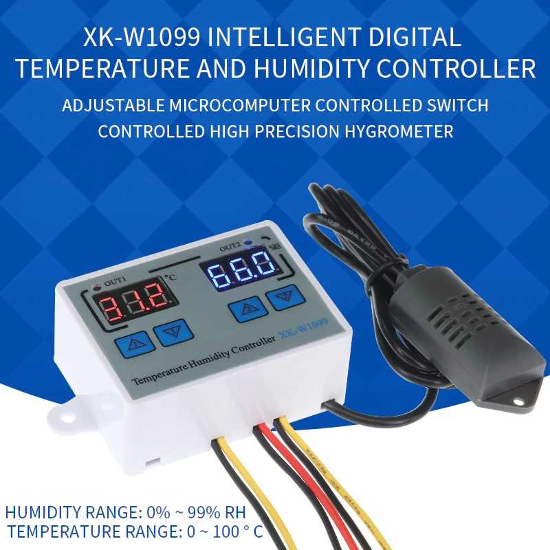 XK-W1099 Temperature Humidity Controller XK-W1099 Digital Thermostat Humidity Controller Incubator Temperature Humidity Controller 10A Direct Output Hygrometer Control.